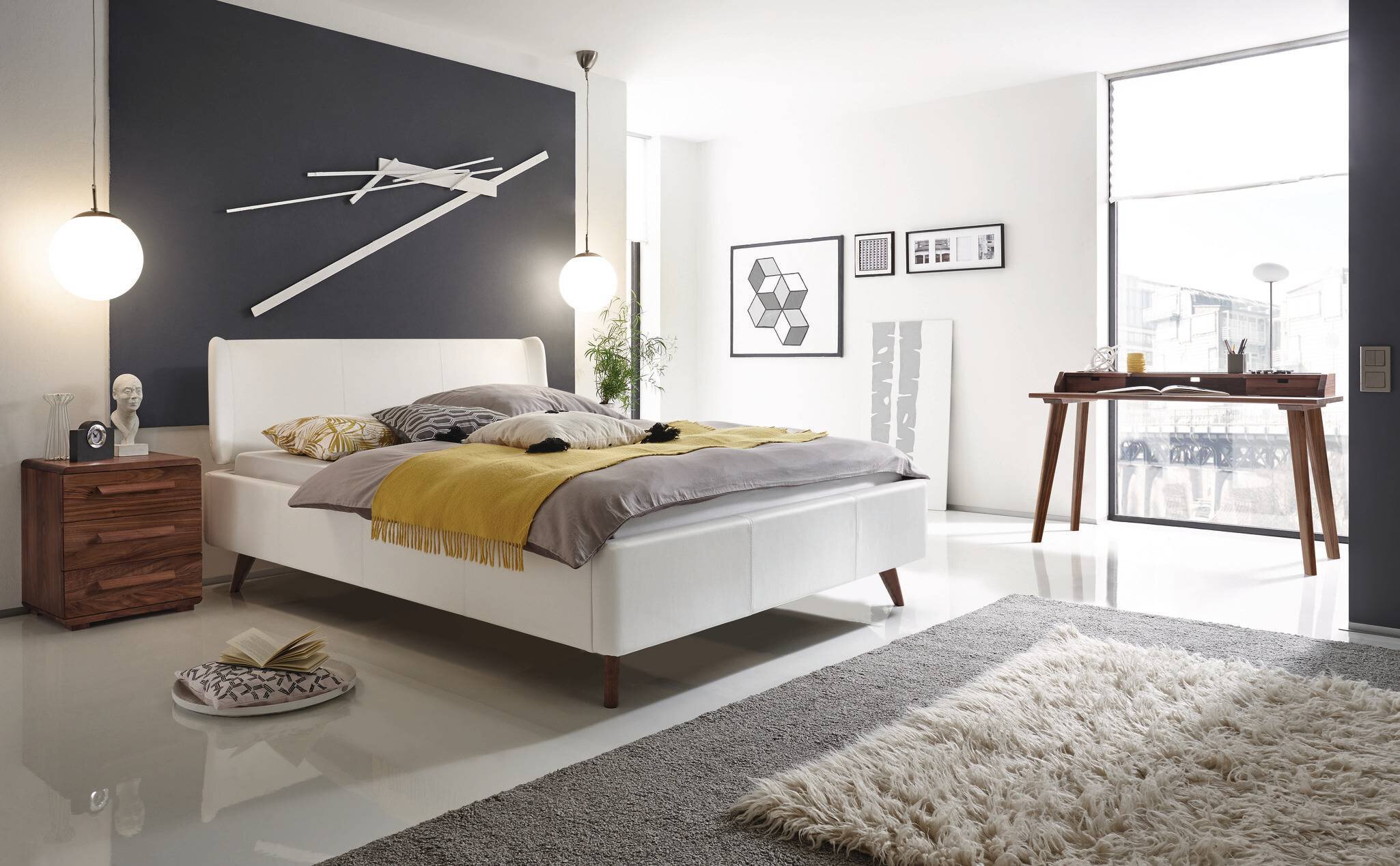 MehrLit 372-Campos blanc, pieds 82-noyer, huilé